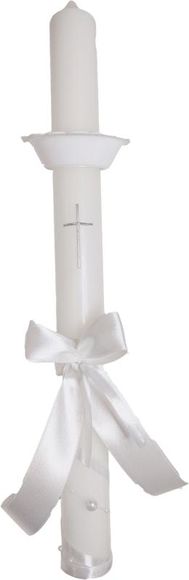 Krstová sviečka so strieborným krížikom a chránitkom /140 g, 2 cm x 35cm/