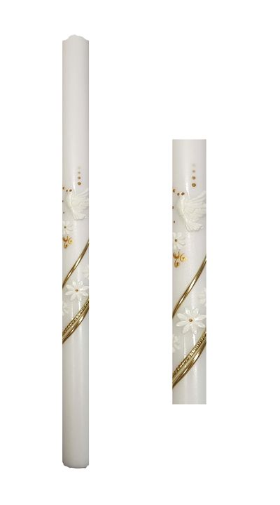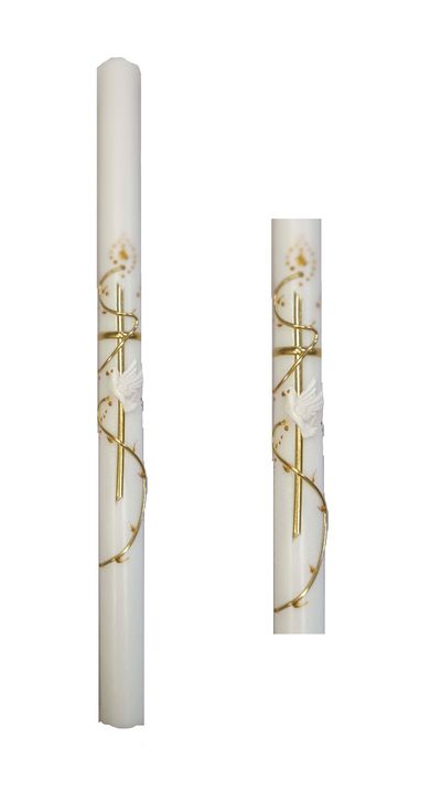 Krstová sviečka s holubicou a krížikom, /165 g, 2,5cm x 38cm/