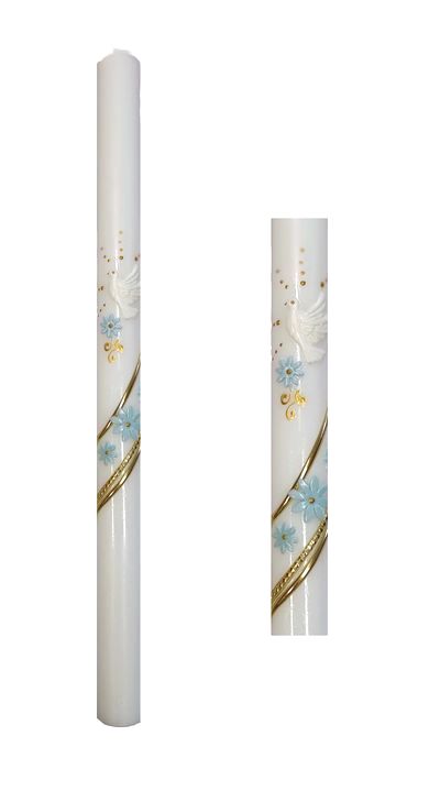 Krstová sviečka s holubicou a modrými kvietkami, /165 g, 2,5cm x 38cm/