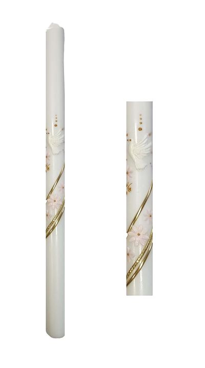 Krstová sviečka s holubicou a bielymi kvietkami, /165 g, 2,5cm x 38cm/